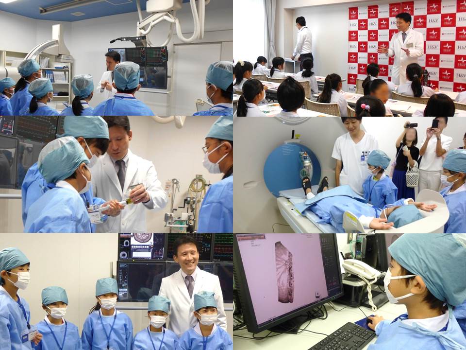 今回は 22人の小学生のみなさんに参加いただきました。医師の名札を付け、白衣や術衣を着て医師となり体験のスタートです。手術室では実際の道具に触れ手術の模擬体験を行いました。検査室では心電図や超音波検査で心臓の動きや血流を観察しました。脈のとり方も勉強しました。倒れている人を助けるには実際にどのように行動すればよいかも学びました。心臓マッサージも練習しました。救急の現場で リーダー役になってくれると期待しています。 今後も微力ではありますが、地域社会へ貢献する取り組みとして継続して参りたいと思います